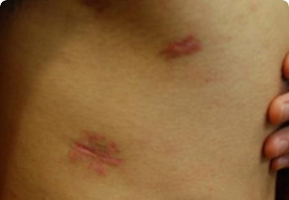 긁거나 집어 올리면 출혈이 되는 증상입니다.