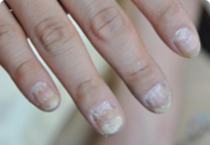 누렇게 착색되거나 두꺼 워지는 증상입니다.